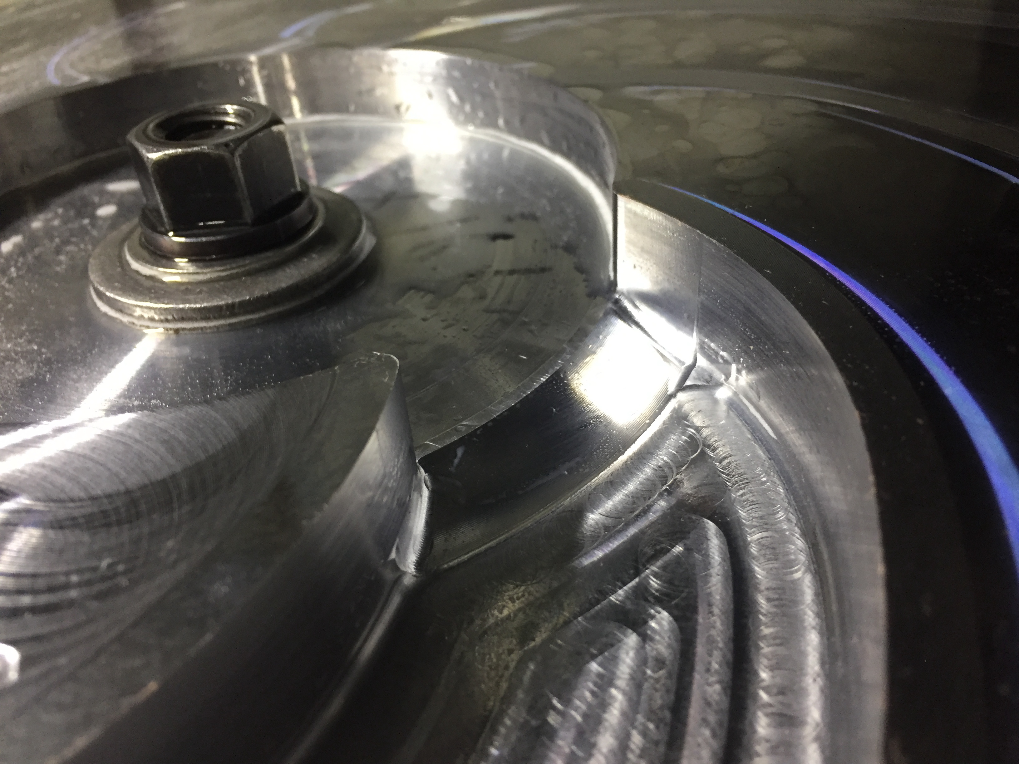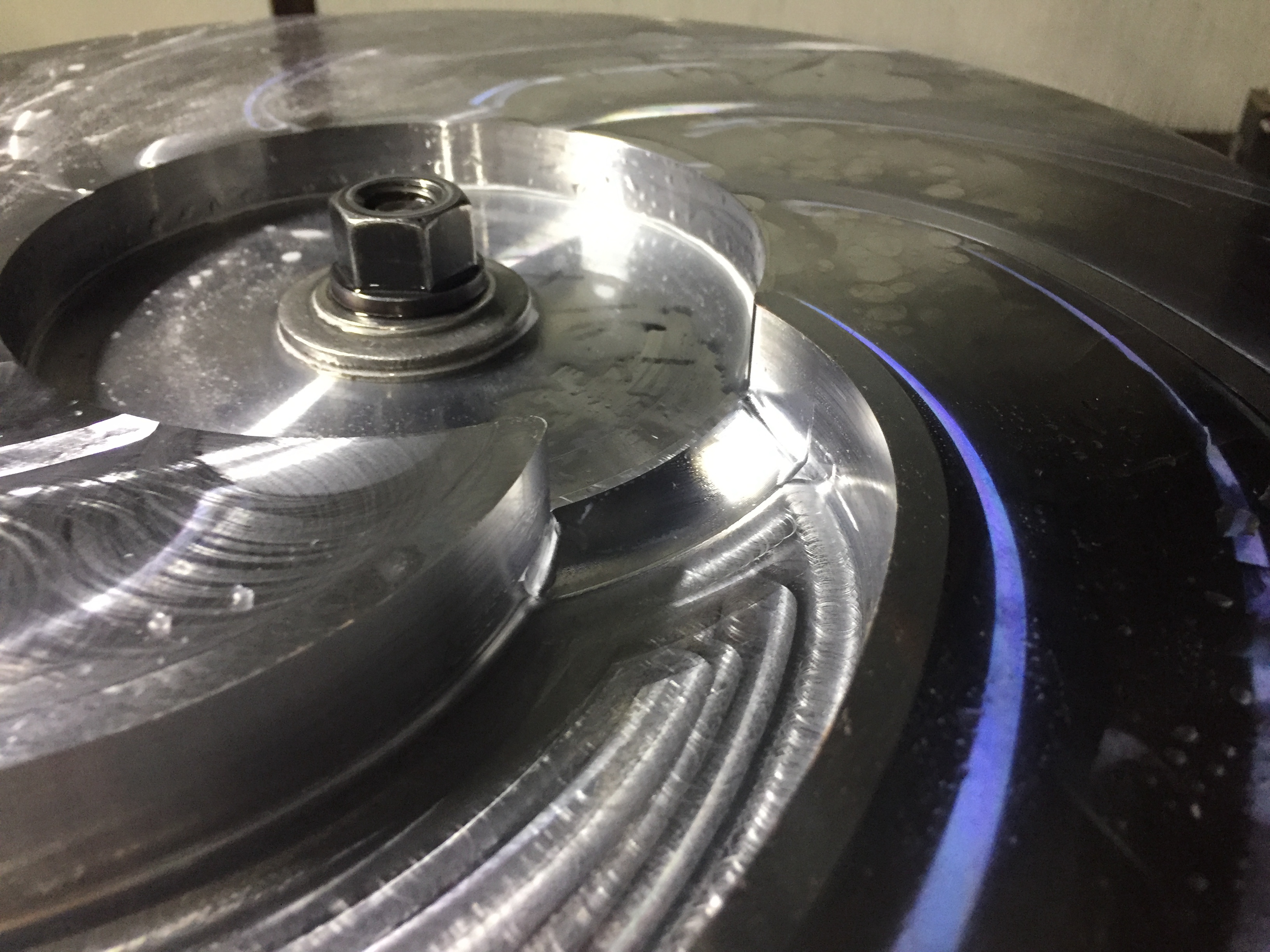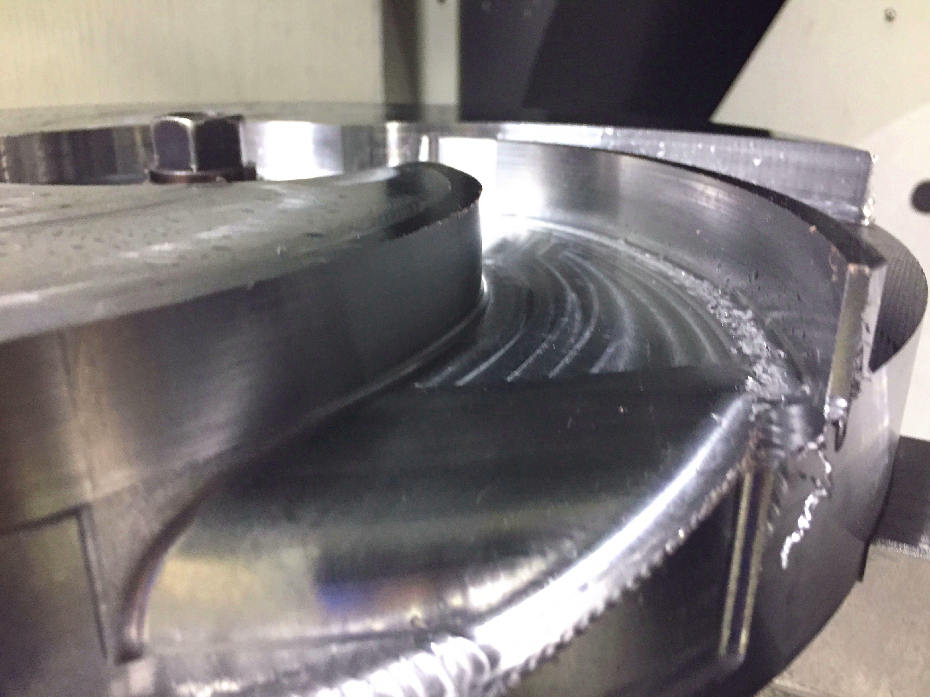 ステンレス製の円盤形状の材料を5軸マシニングセンタを使ってスクリューポンプ用の羽形状に加工をした時のフリー画像です。