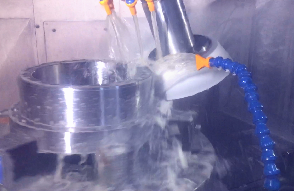 立形CNC研削盤でハウジングのツバ部にある端面を平面研削加工したときのフリー画像です。