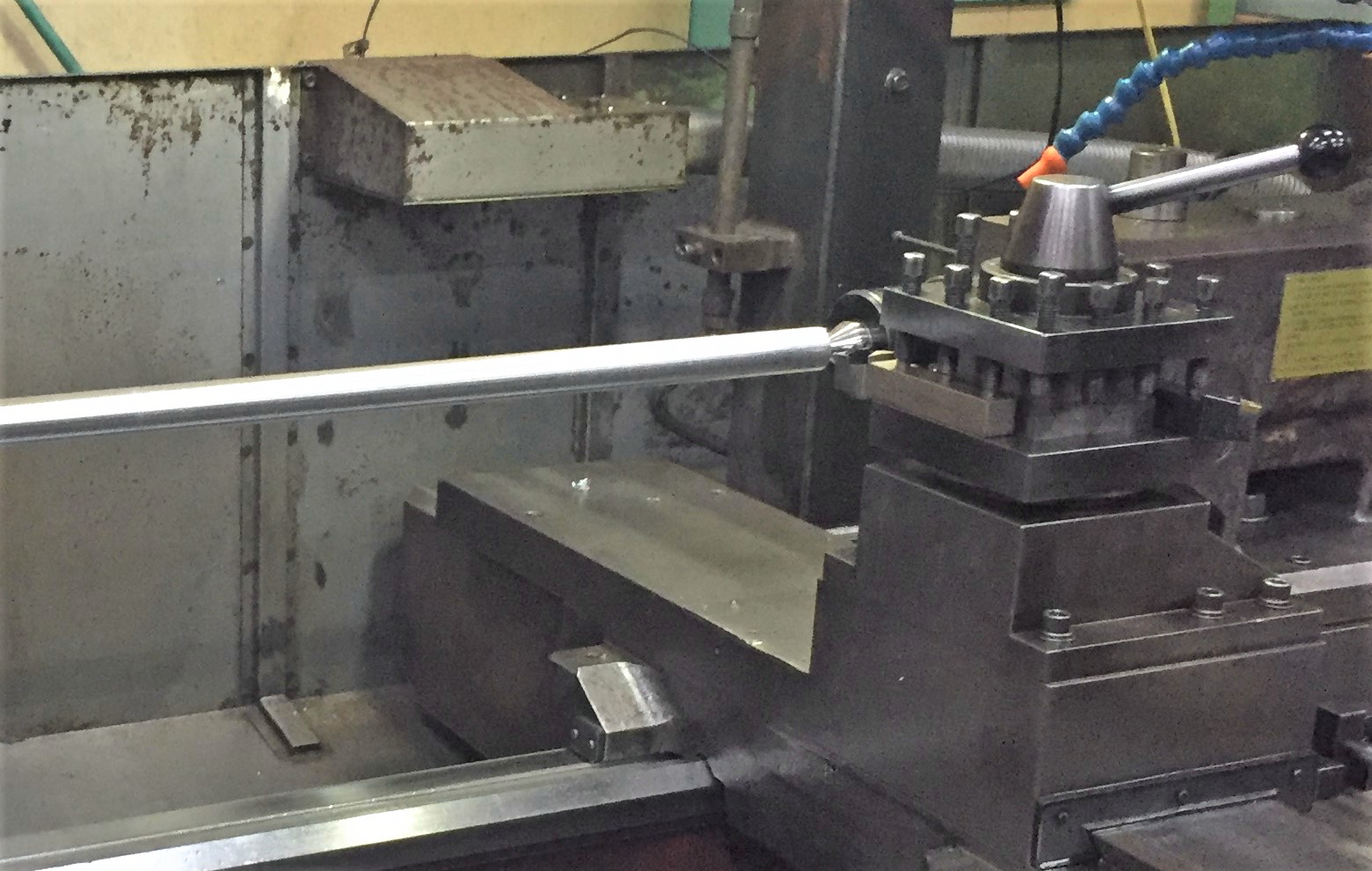 This is a free image of a finishing process on a long, thin shaft with low rigidity, performed on a CNC lathe.